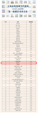 基于理論成果進一步向實踐應用轉化,2021年初,在上海市住房城鄉建設管理委員會科技委的支持和指導下, 上海市建筑學會聯合上海市城市經濟學會和上海市文物保護工程行業協會開展了上海市優秀現當代(1949~2000年)建筑的價值調查,經過研究團隊調查和多次專家評審會討論,逐步篩選出各個時代、各個類型的優秀現當代建筑名錄,并于近日公布了第一批推薦名單。