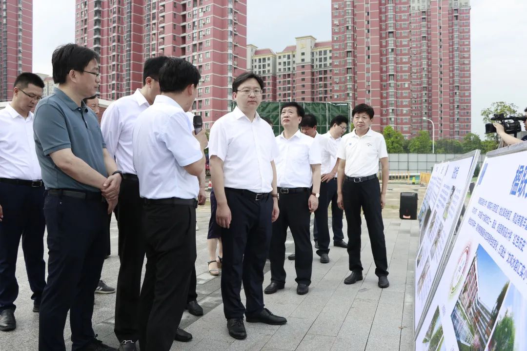 7月15日上午,海安市委副書記、市長譚真,市人大常委會主任張亞曦,市政協主席李春旺,市委常委、常務副市長嚴長江,市人大常委會副主任陳興俊,副市長周小軍、周平,市政協副主席丁興育等一行領導視察了蘇中建設承建的海安市教育產業重點民生工程——高新區實驗小學項目推進情況。市政府辦、人大人代委、政協提案委主要負責人等參加活動。蘇中建設董事長笪鴻鵠、江海區域公司總經理王祥等陪同視察。