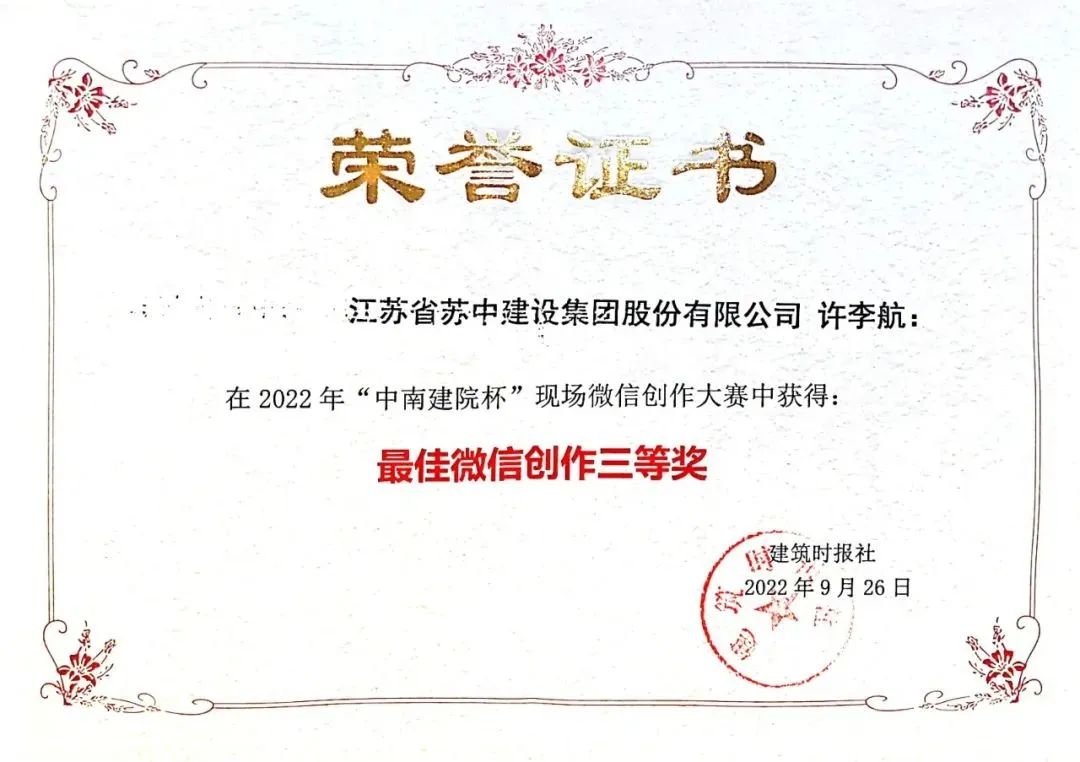 “蘇中集團”微信公眾號蟬聯全國建筑業“最具影響力”微信公眾號